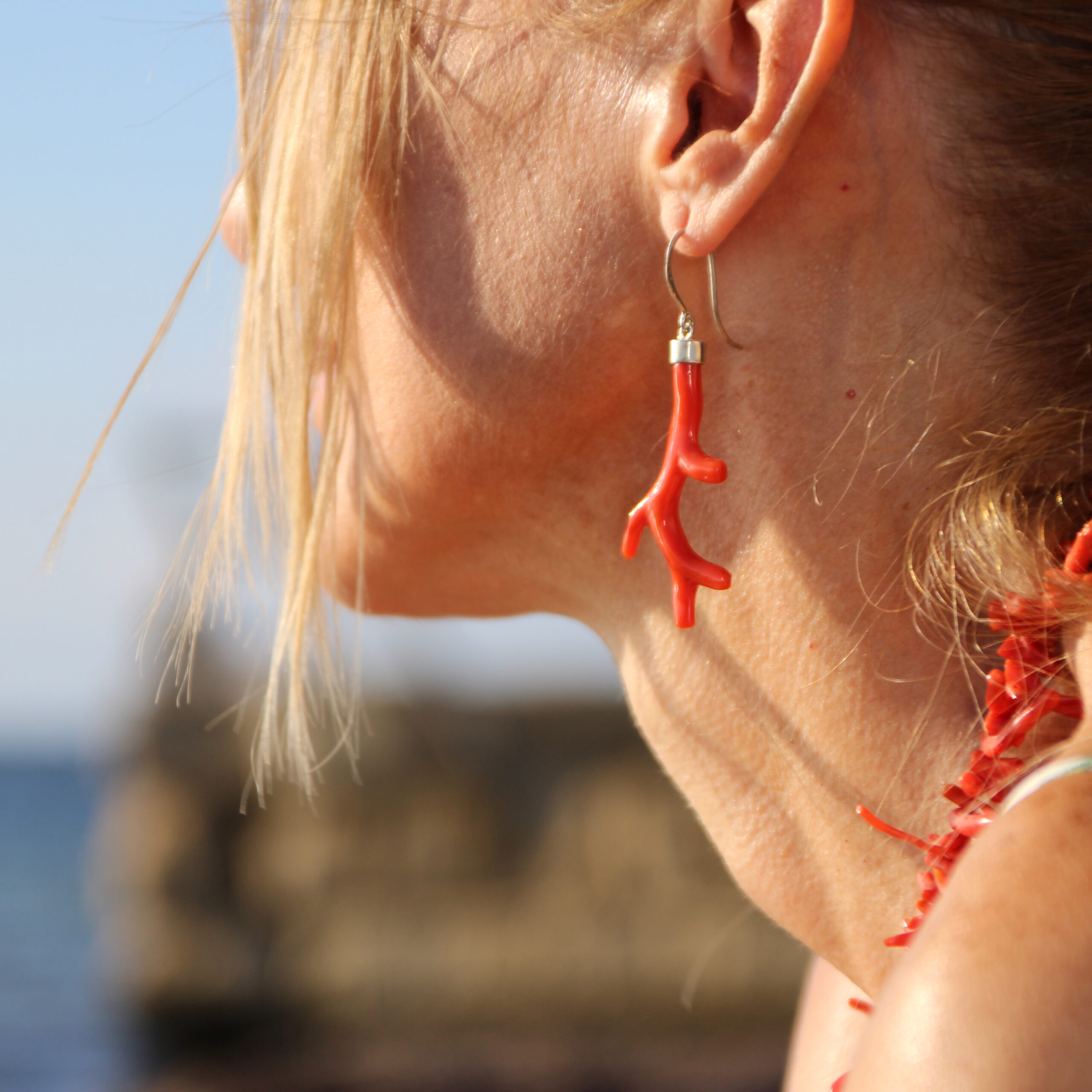 Orecchini Pendenti Ramo in corallo rosso e argento 925
